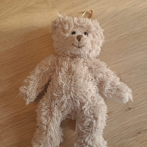 Teddykompaniet bamseleke med rødt hjerte med teksten 'Love You'. Passer for barn over 3 år. Laget av mykt materiale, designet som en liten bamse i en rosa eske.