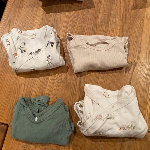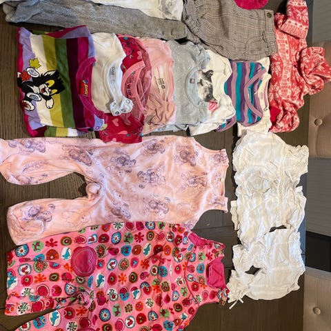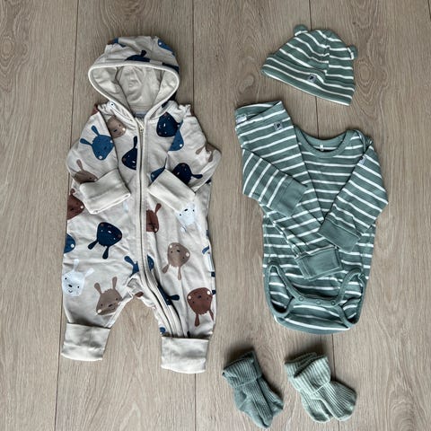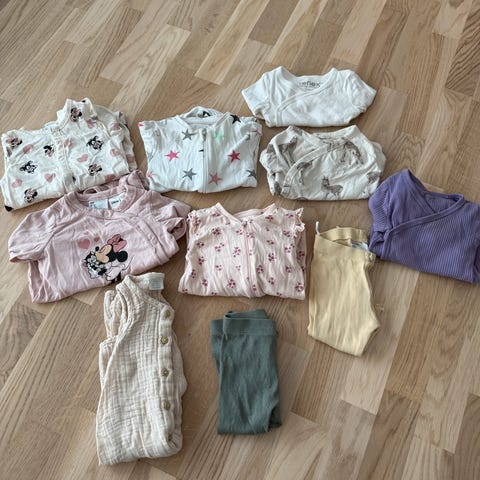 Klespakke str. 68 med bukser, body, pysj og cardigan