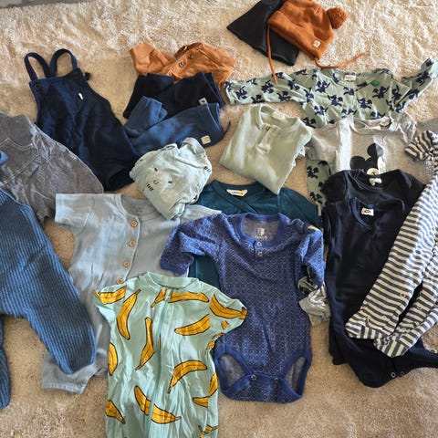 Barneklær som kan passe barn fra nyfødt opptil 2 måneder.