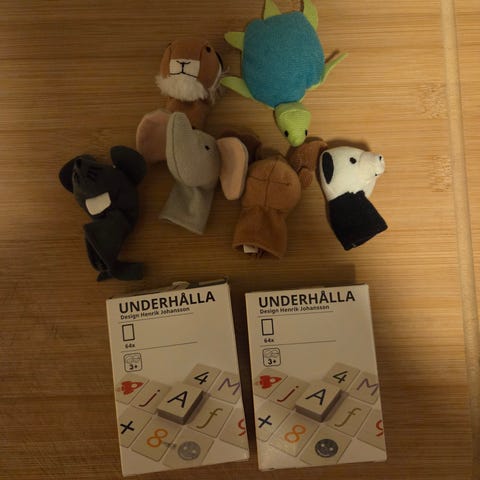Among Us Barneleker inkluderer ulike tilbehør og materialer som maling, perler, bøker og små gjenstander. Produktene er egnet for kreative aktiviteter og lek for barn.