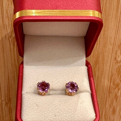 Lite brukt gullanheng i 18 karat. Vekt er 1,2 gram. Mål er 23x14 mm.
