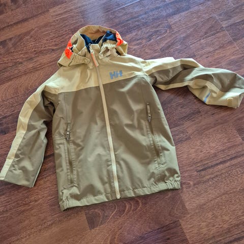 Vinterjakke/skijakke i str 122. Ingen riper. Den er maskinvasket, men det er litt fargeendring rundt lummene og på ermene (se bilde). Mulig det blir borte med en grundigere vask.