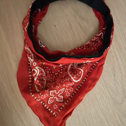 Selger et fint rødt bandana/skjerf til hund med hvite stjerner. Perfekt til både hverdags og julebilder. Mykt stoff og knytes enkelt rundt halsen. Lite brukt og i fin stand.