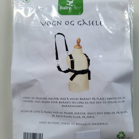 Barnesele i svart farge. Justerbare stropper for sikkerhet og komfort ved bruk i vogn eller ved gåing. Laget av slitesterkt materiale.