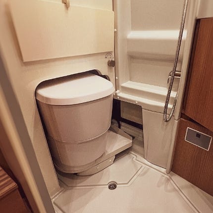 Toalett var montert i ny bobil, ikke brukt da det ble byttet ut med annen WC-løsning (er aldri brukt, men var montert i bil når jeg kjøpte den så har ikke original emballasje).
