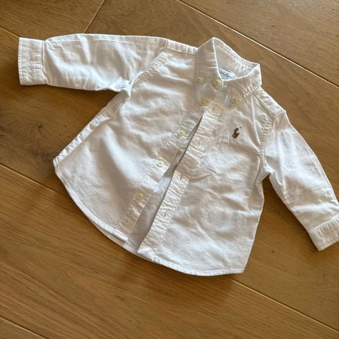 Polo Ralph Lauren skjorte, størrelse 12 mnd (9-12mnd) matchende caps i str.12 mnd (kun brukt 2 ganger)
