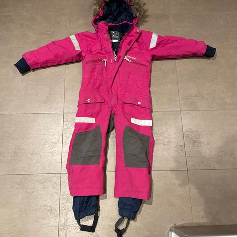 Didriksons vinterdress for barn i størrelse 100. designet for jenter. Materialet er vanntett, egnet for utendørs bruk i kalde og våte forhold.