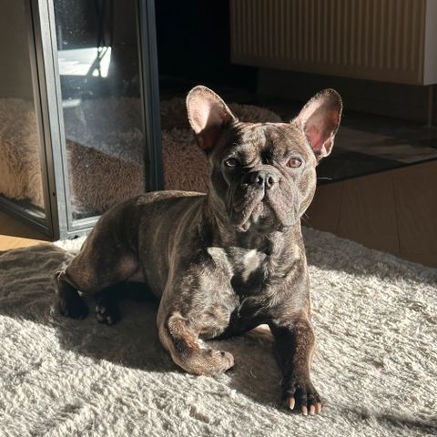 Er veldig glad i turer, være med i bil og kose meg på sofaen, vil være med overalt, har fått kjemisk kastrering og regnes som "ufarlig" for ev løptisper.