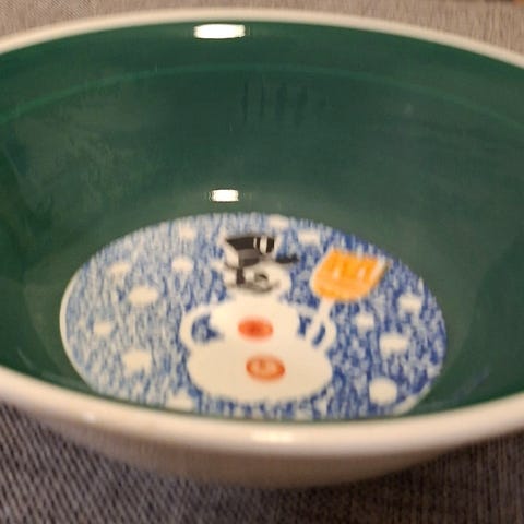 Søkeord Tre Ci Italy Tre Ci skåler Tre Ci bolle Tre Ci tallerken made in Italy italiensk keramikk italiensk porselen juleskål snømann motiv snowman bowl christmas bowl rosa striper retro julepynt serveringsbolle snacksbolle pastatallerken desserttallerken fruktskål julekaker julegodt advent pynt julebord fargerik keramikk kjøkkenpynt italiensk design vintage italian bowl vintage italian plate pent brukt retro servise samlerobjekt