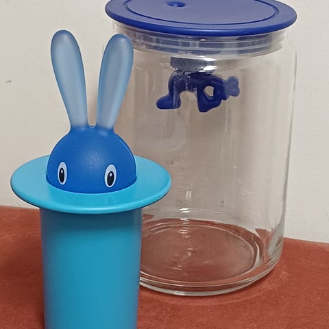 Selger en meget pent brukt Magic Bunny tannpirkeholder fra Alessi i fargen blå/turkis. Høyde ca 15 cm.