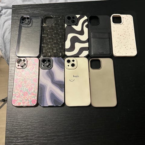 Apple telefondeksler i ulike design og farger, inkludert rutemønster, flammeprint, leopardmønster og ensfarget svart. Deksler er laget for å beskytte telefoner og kan passe til forskjellige Apple-modeller. Materialene varierer, men inkluderer plast og gummi. Passer for alle kjønn.
