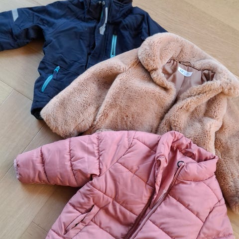 Det finnes et hull og noen mindre merker på jakken, som vist på bildene.