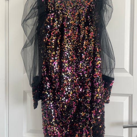 Fantastisk "one shoulders" paljett kjole. Helt ny, italiensk merke Twinset Milano. Størrelse er mellom S-M.