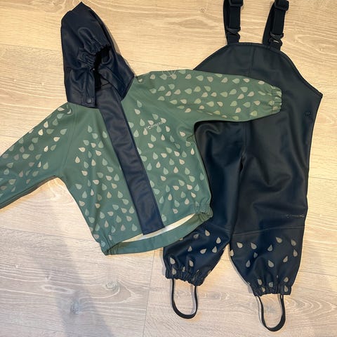 Regndress 2-delt pent brukt. Den har en liten skrapskade ved glidelåsen, ellers som ny.