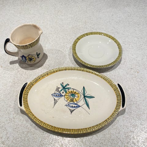 Sukkerkopp og fløtemugge med brett (Il-o-van)