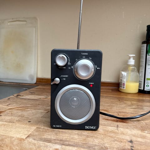 Selger to analoge klokkeradioer i retro stil. Begge har FM/AM, alarm, snooze og tydelig display. Enkle å bruke, solide og perfekte for kjøkken, soverom eller garasje. Begge fungerer som de skal.