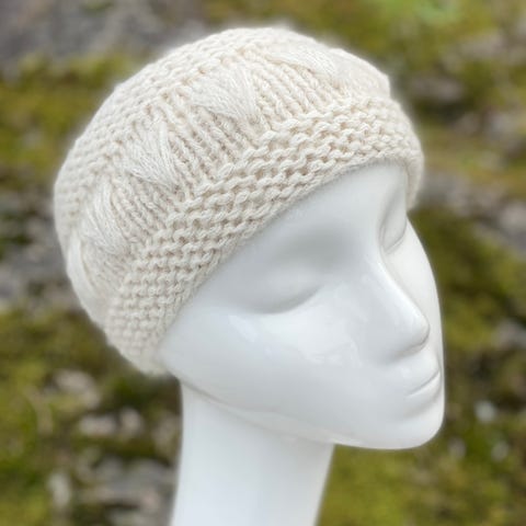 Søkerord: Knit me, offwhite, lue, klompelomplue, jente, dame, damelue, jentelue, ungdom, knitted, håndtrikket, knitting, knit me, merinoull, vinter,påske,påskelue,gave unisex,ulllue, gulltråden, gulljenta