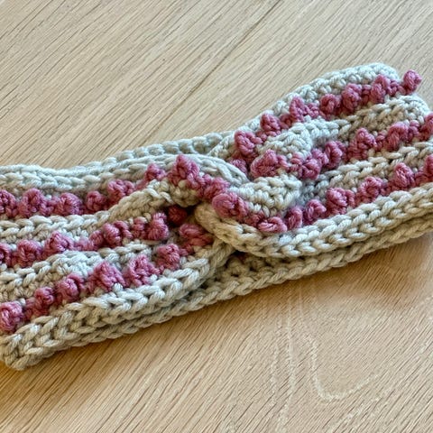 Rosa strikket pannebånd ca 2-4år