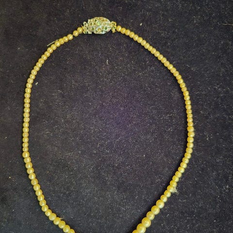 Vakkert halskjede av sølv med anheng av ekte jade og zirkon