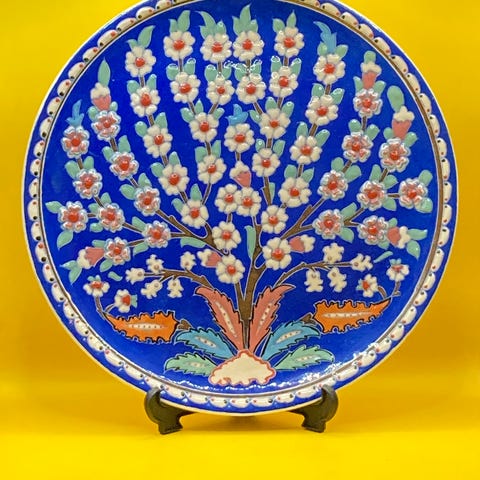 kütahya,tyrkisk keramikk,blått veggfat,håndmalt fat,orientalsk dekor,boho interiør,veggdekor,keramikkfat 32 cm