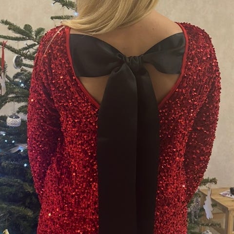 Kjempefin kjole i sort med gullbroderi. Str. uk 10, men jeg synes den er litt liten i størrelsen. Kanskje 36-38. Veldig pen på. Glidelås i ryggen.