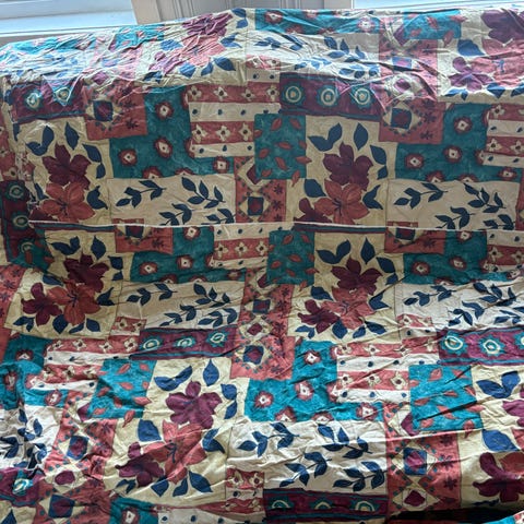 Vakker, håndsydd, stor pute/puff fra kunstner i Jordan. Stort sett ligget i en skuff da vi ikke har funnet en plass til denne. Mål 80x70 cm. Glidelås og stoff på baksiden. Hentes på Sinsen eller sendes mot porto. Kommer uten innmat(jeg puttet mindre puter inni på bildet)
