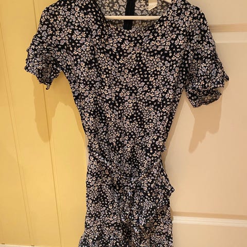 Kjempefin kjole. Størrelse 36. Passer ikke lenger. Snittet på skjørtet skiller seg ut og gjør at den faller veldig pent. Bladmønster.