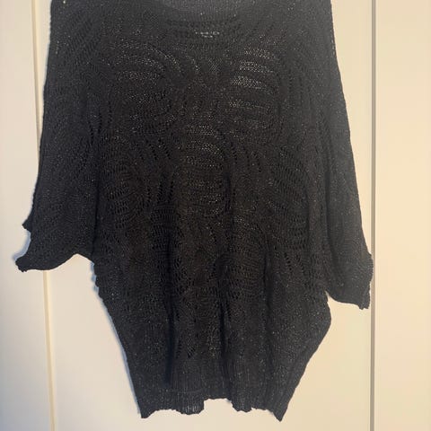 Kul svart lang hullstrikket cardigan/genser med lommer. Kort erm. Super pent til det meste!