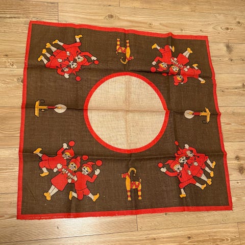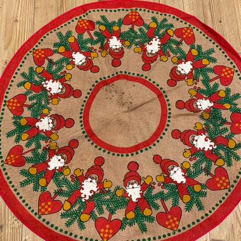 Vintage juletreteppe i tynn jute / strie