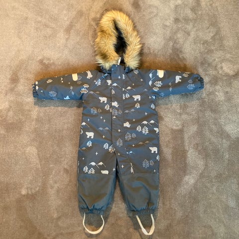 Vinterfôret parkdress i størrelse 80 selges. Dressen er meget pent brukt og fremstår som ny. Hetten tiltrekker seg lett litt rusk men dette kan enkelt tas bort.