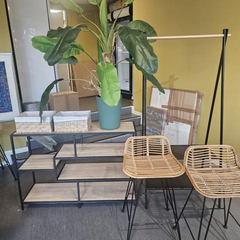 Italiensk design. Cafe tabel. Nydelig glass skap 5000 kr.. Spisestue bord med 6 stoler. 7000. Tv benk 1500. Kjøp av alt 12000.