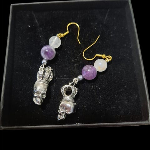 Til salgs er én (1) øredobb med en håndformet, dyp blå glassfugl – en liten glitrende kompis som sitter fredelig på sin sølvkrok.