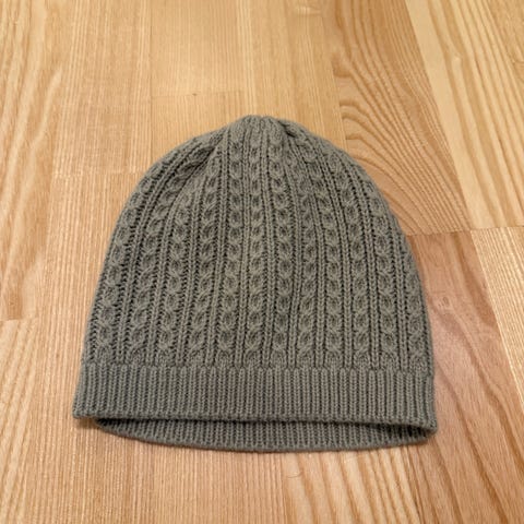 Luen er laget av 80% ull og 20% nylon, med kabelstrikket mønster.