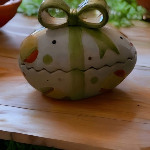 På toppen har klokken en hank, og rundt denne kan man feste en dekorativ sløyfe i stoff som matcher årstiden og matcher den grønne glasuren. Formen minner om en tradisjonell bjelle, og kombinasjonen av keramikk og tekstil gir den et både rustikt og dekorativt preg.
