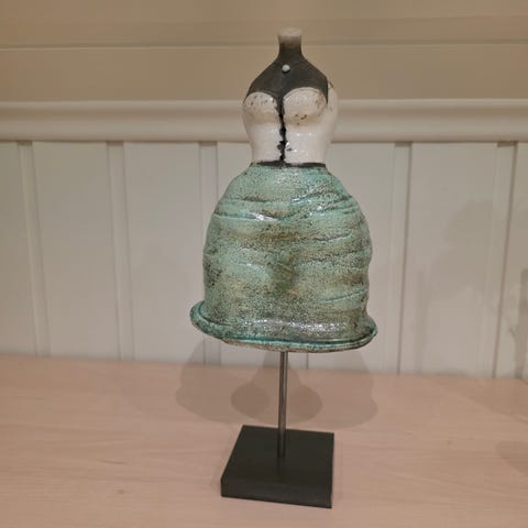 Står støtt på filtknotter og passer godt som pynt på skjenk, hylle eller i jule-/vinterdekor.