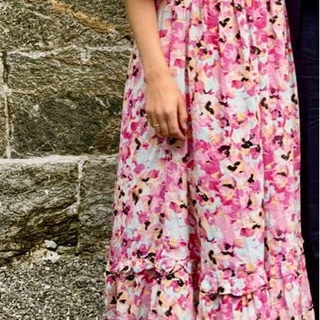 Kjempefin maxikjole fra mbym, helt ubrukt, lappen fremdeles på. Veldig fin og luftig kjole med behagelig underkjole som følger med. Snor i livet til å regulere passform. Nypris 1200 kr.