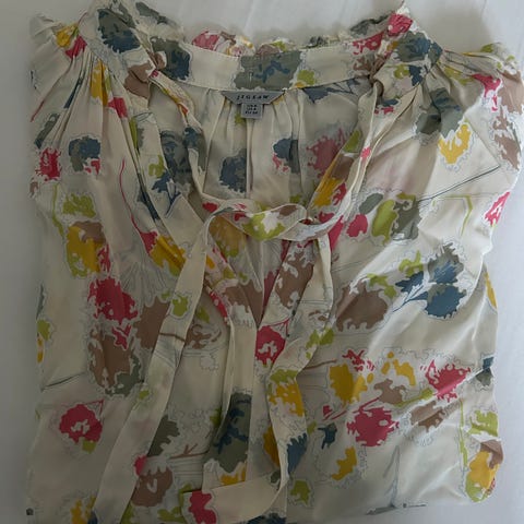 Jigsaw silkebluse med 3/4 ermer i merineblå farge. Størrelse M.