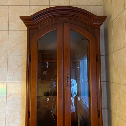 Bokhylle i tre med naturlig farge. Hyllen har flere åpne og lukkede oppbevaringsseksjoner med dører og hyller. Passer til oppbevaring av bøker og andre gjenstander. Skapets høyde er 54 cm og bokhyllens dybde 25 cm.