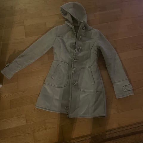 Bik Bok Annet yttertøy i beige farge, størrelse S for kvinner. Jakken har hette og belte i livet for justering. Passer som yttertøy til hverdagsbruk.