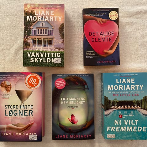 Bok Liane Moriarty «Store hvite løgner» selges. Har flere bøker av samme forfatter. Kan sendes mot at kjøper betaler porto.