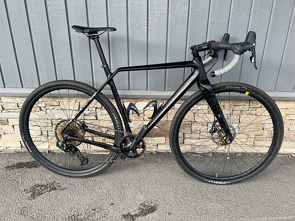 Gaffel: Checkpoint full carbon, tapered carbon steerer, fender mounts, triple rack mounts, flat mount disc, 12x100mm chamfered thru axle