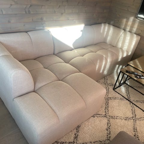 Nesten ubrukt 3 seter sofa fra Jysk (Aarhus) kjøpt i august 2025, men ikke blitt brukt etter den ble montert opp grunnet kjøp av en større sofa.