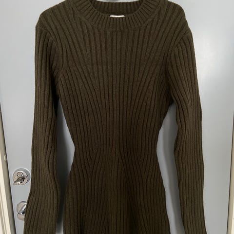 Tykk og god ribbestrikket kjole fra HM selges. Kun brukt 1 gang. Ny pris 499,selges 200. Fin grønnfarge,kommer ikke så godt frem på bildet
