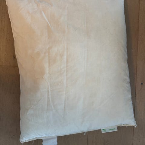 Klippet av lappen, tror det er blanding av dun og fjær