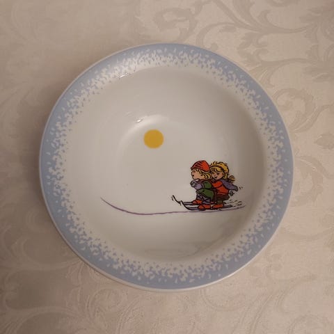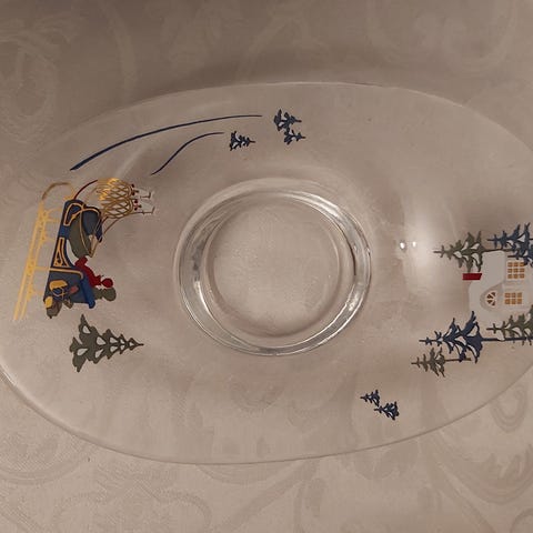 dekorativt telysfat i god stand, det eneste er at gullet på meiene til sleden har minimal slitasje. 19 cm lang og 12 cm bred