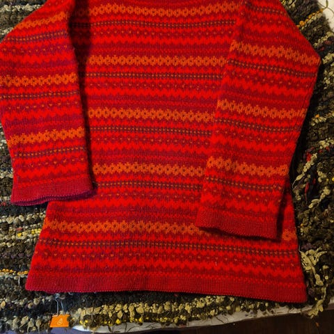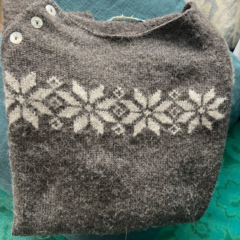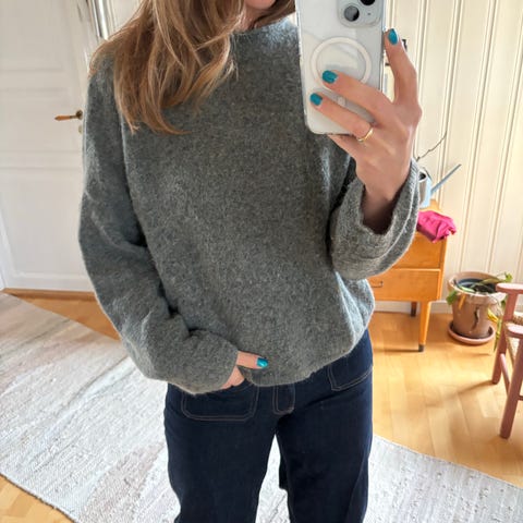 Deilig ullgenser med båthals. Se bilde for innhold. Oversized modell.Selges da den ikke blir brukt nok.