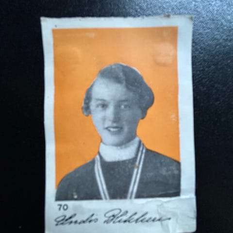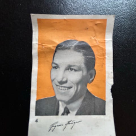 Meget sjeldent originalt samlebilde med påtrykket autograf. Signaturen er ekte, men at den er mangfoldiggjort på kortene og ikke signert direkte på. Nummerert. Utgitt 1935. Se bilder for tilstand. Samlebildet er ex-album. Størrelse 6,7 cm x 4,5 cm. Typisk tidsmessig design fra 30-årene.