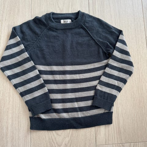 Klassisk ullgenser til barn. Pen «tung» strikk, ikke ullundertøy altså. Veldig pen. Str. 98–104.