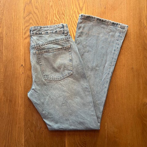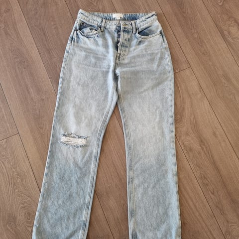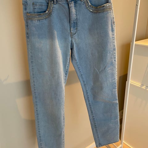 Behagelig low waist stretch jeans i 92% bomull med kul bling dekor på lommen! Rette ben med innerlengde ca 63 cm.
