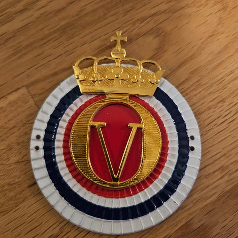 Samlertallerken med Norges riksvåpen, distribuert av Erling Krage A/S. Klassisk design med gullkant og preget mønster. På baksiden sitter det en solid opphengsløsning, så tallerkenen kan henges rett på veggen. Et flott samleobjekt og perfekt dekor for alle som elsker Norge.